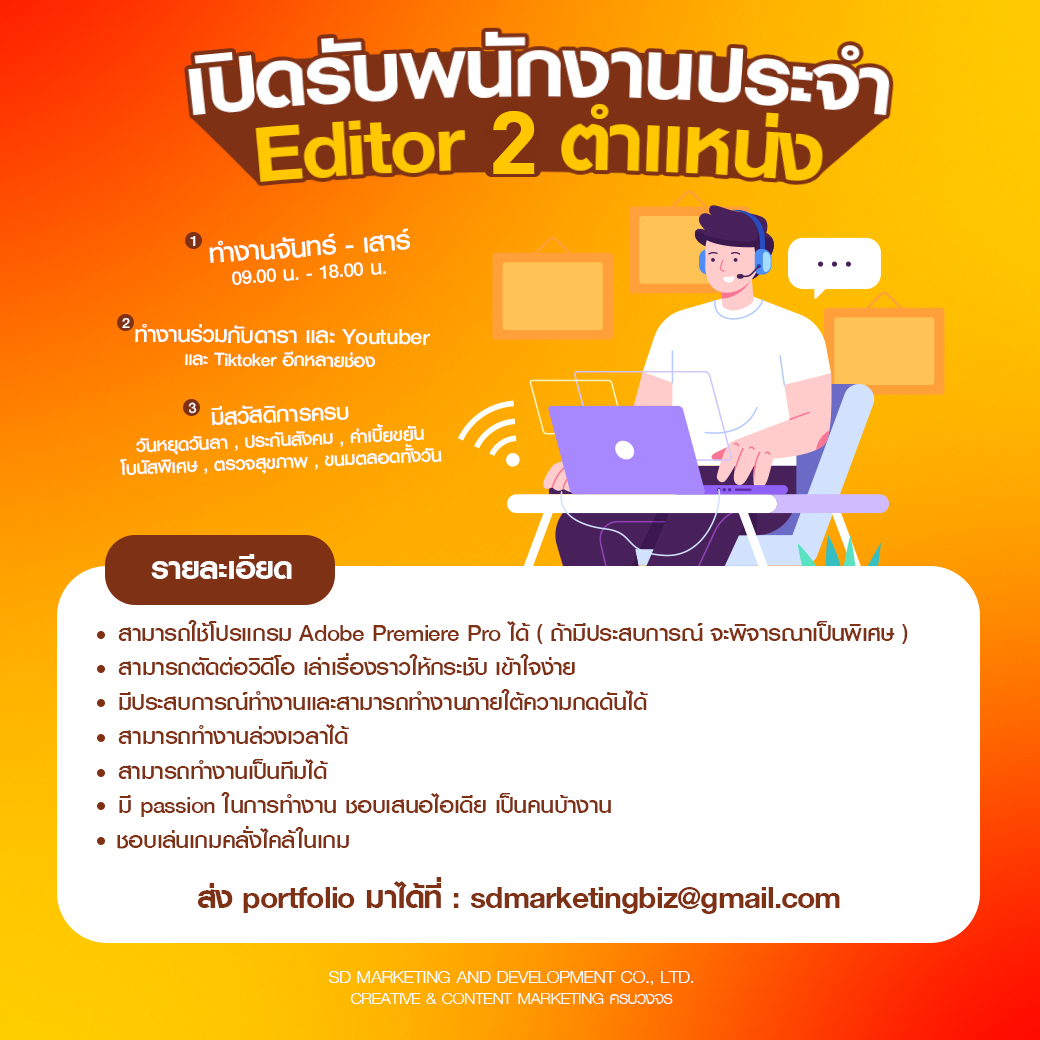 - มีประสบการณ์การตัดต่อวิดีโอ
